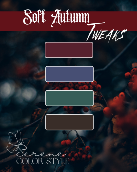 For Soft Autumns gravitate to colors that are softer (more grey tone added) and warm but more towards neutral.